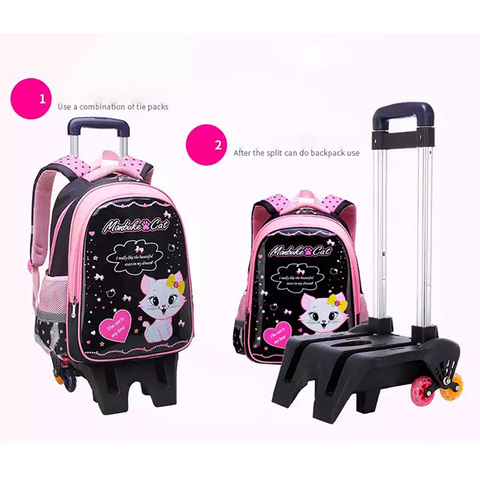 2023, новый рюкзак с мультяшным принтом, сумки на колесиках, на заказ, водонепроницаемая школьная тележка, школьные сумки для девочек